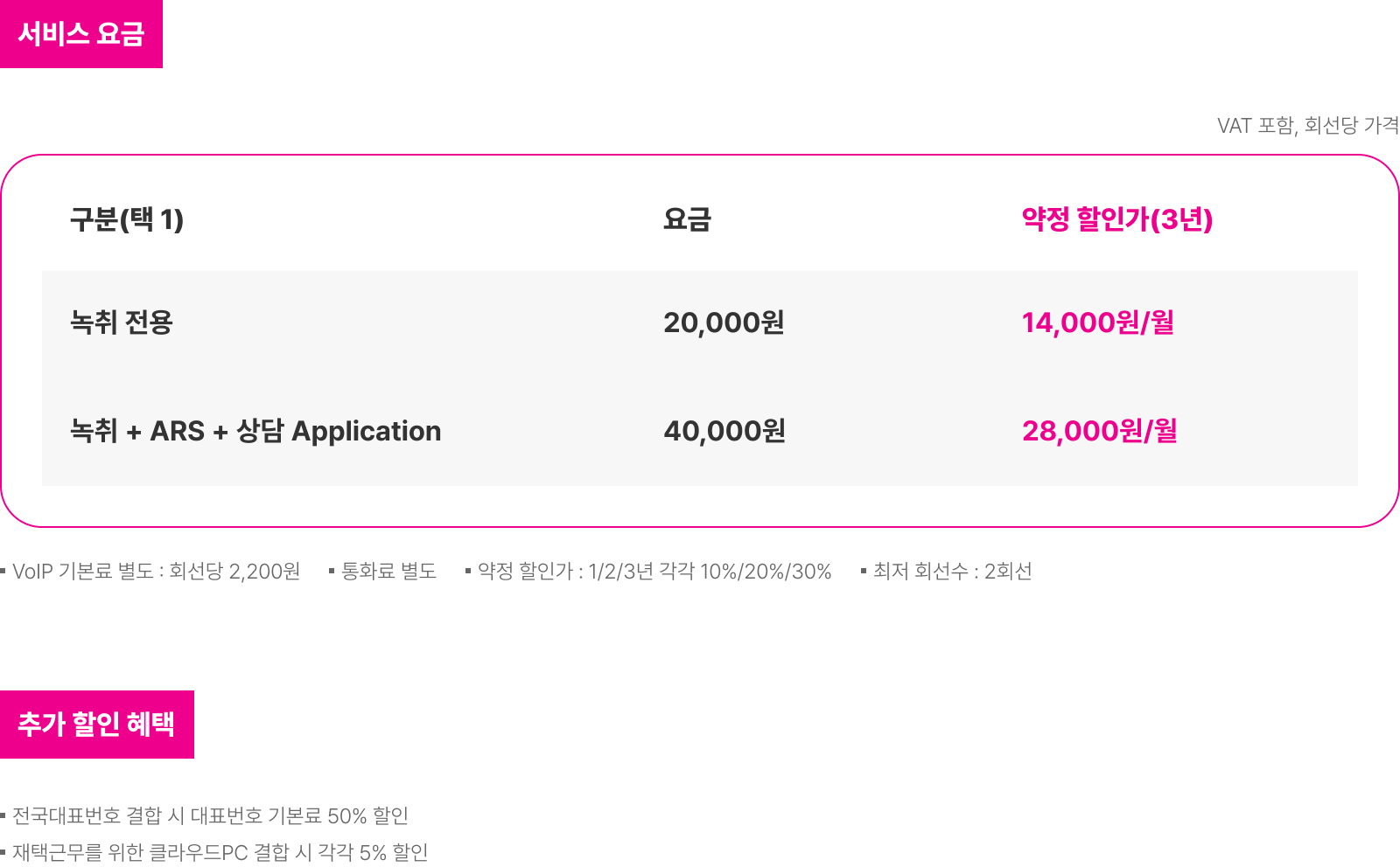 - APP : 상담원이 통화 중에 고객 정보, 기존의 상담이력 등을 볼 수 있는 상담원용 프로그램 및 관리자용 통계 페이지가 제공됩니다.